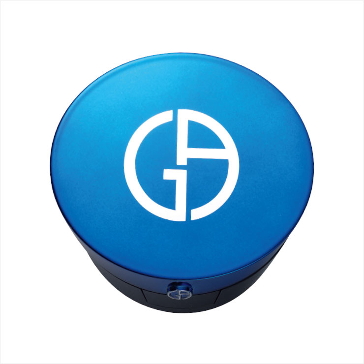 메탈 블루 케이스부터 멋쁨 폭발! 블루 피그먼트를 함유해 노란 기 혹은 칙칙한 안색을 화사하게 커버해 주는 데 효과적이다. 럭셔리 메시 패브릭이 양 조절을 도와 커버력을 조절할 수 있는 것도 강점.