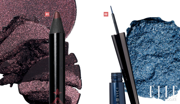 1 MAC 아이섀도, 뷰티마크드. 2만2천원 + 안나 수이 아이라이너 펜슬 워터프루프, 500호 적갈색, 2만2천원. 파티라면 좀 더 특별하게 시선을 끌 수 있는 와인 빛 컬러로 확실한 포인트를 주자. TIP 눈꺼풀을 살짝 올려주면서 펜슬로 점막을 채운 후 길게 빼준다. 그 위에 아이섀도를 골고루 발라준다.강렬한 스모키 메이크업은 눈썹이 얇고 내추럴하게 표현되야 하는데 눈과 눈썹이 둘 다 강하면 지나치게 터프해 보일 수 있기 때문.