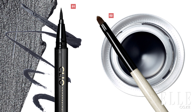 1 클리오 워터프루프 브러쉬 라이너 킬블랙, 1만8천원. 특급 포뮬러로 더욱 선명하고 또렷해진 컬러가 큰 장점. 한 번에 또렷한 스모키 아이 연출이 가능해 브러시 타입에 거부감 있는 초보자들도 쉽게 아이라인을 그릴 수 있다. 미팅 시 카리스마를 연출하기에 딱 적당한 아이템. TIP 눈 앞머리에서 눈꼬리 쪽으로 빼준 다음 반대편 손가락으로 눈꺼풀을 들어 올려 아이라이너를 눕히듯 잡으면서 점막 부분까지 꼼꼼하게 발라준다.
