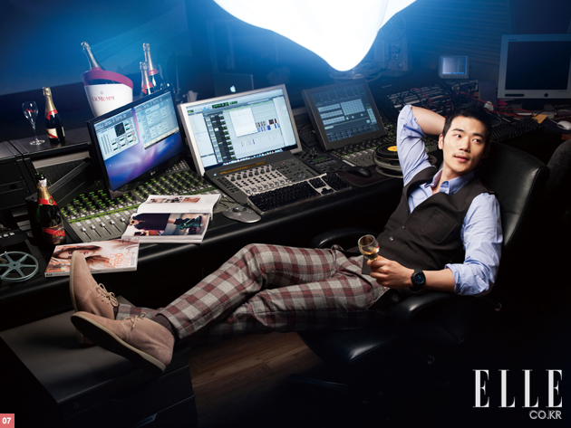 7 시사실에서 G.H.MUMM 샴페인을 마시며 잠깐 숨을 돌리는 프로듀서 역할을 맡은 김강우.