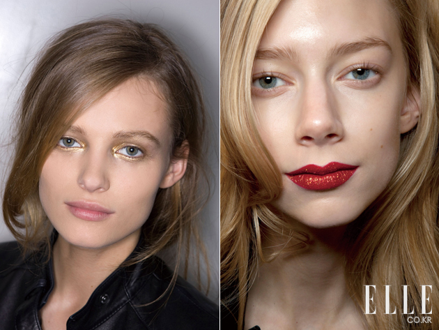 너무 멋부린 듯 혹은 신경 쓴 듯하지 않으면서도 세련된 인상을 풍기고 싶다면 시머링 메이크업이 딱이다. 약간 펄감이 있되 과하지 않을 것. 원래 미묘한 느낌은 연출하기가 더 어려운 법인데 이는 기초공사부터 잘해야 하기 때문이다. 베이스 단계부터 미세한 펄이 들어 있는 루미너스 기능의 제품을 꼼꼼하게 발라준다. 파운데이션을 바른 후에는 파우더 대신 하이라이터로 마무리해 준다. “이때 광대뼈와 콧대, 입술 중앙을 중점적으로 발라 포인트를 주세요. 그러면 얼굴에 좀 더 신비로운 일루전 효과를 줄 수 있죠.” 아르마니 프리베 쇼에서 시머링 글램 룩을 선보인 메이크업 아티스트 린다 칸텔로의 조언이다.