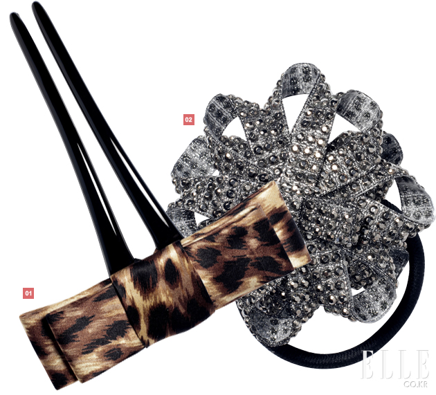 1 데뷰턴트 타프타 실크 보우 헤어핀. 가격미정. 2 데뷰턴트 청키 스터드 포니. 가격미정. |