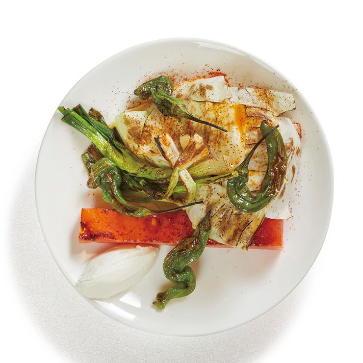 @domix_seoul) 에서는 겉 부분만 살짝 태우는 방식으로 수박을 구워 낸다. 이곳에서 주로 쓰는 수박의 당도는 12브릭스(일반 마트에서 구매할 수 있는 수박은 보통 10~11브릭스다). 이보다 당도가 약간 모자란 경우 수박 겉면에 설탕을 얇게 발라준 뒤 굽는다. 뭉근하게 구운 수박과 양배추 쌈, 양념한 우삼겹에 쌈장 대신 프로마주블랑 치즈를 얹어 탄생한 메뉴가 바로 ‘고추장 숯불구이(1만9000원)’다. 짭짤한 고기와 달콤하게 구운 수박 한 조각, 버터 향과 은은한 산미가 어우러지는 치즈의 조화가 그야말로 환상적이다. 와인을 곁들인다면 적당히 스모키한 피노 누아 품종을 선택할 것.