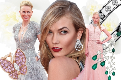 밤하늘의 빛나는 별을 화려하게 담아낸 티파니 빅토리아 믹스드 클러스터 링과 브레이슬렛, 네크리스는 가격 미정, 모두 Tiffany & Co. 플라워 아플리케 장식의 드레스는 가격 미정, Elisabetta Polignano by Esmeralda. 헤어피스는 가격 미정, Angtt.