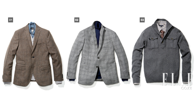 2 라이트 그레이 체크 재킷은 캐멀 컬러의 우아한 멋을 잘 살려준다. 네이비 터틀넥 니트 1백만원대 질 샌더 그레이 체크 재킷 1백33만5천원 Z 제냐