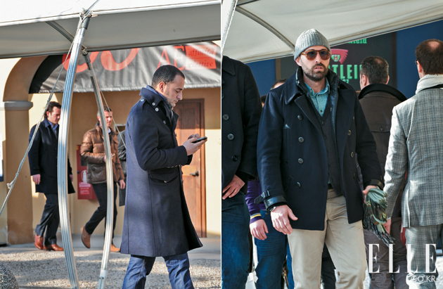 코트만큼 피트가 중요한 것도 없다. 어깨선이나 소매 길이가 맞지 않는 코트를 입으면 제아무리 값비싼 소재로 만든 코트라 해도 제멋을 낼 수 없다. 가장 중요한 건 길이다. 오버코트의 경우 무릎 위로 살짝 올라오는 길이가 이상적이다. 무릎을 덮으면 키가 작아 보인다. 피코트라면 엉덩이를 살짝 덮는 길이가 좋다. 골반뼈에서 10센티미터 정도 내려오는 길이라고 생각하면 이해가 빠를 것. |