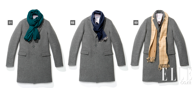 수트는 타이와 포켓 스퀘어로 꾸미지만 코트는 머플러로 꾸며야 한다. 다양한 방식으로 머플러를 활용해야 한다는 얘기다. 단순히 목에 걸쳐 늘어뜨리는 것부터 복잡한 매듭으로 마무리하는 것까지. 목에 착 감기는 캐시미어 머플러라면 최대한 단순하게 묶고, 얇고 가벼운 머플러라면 <겨울연가>의 배용준처럼 풍성한 매듭으로 연출해보도록. 겨울 옷입기의 재미란 바로 이런 것 아니겠나. |