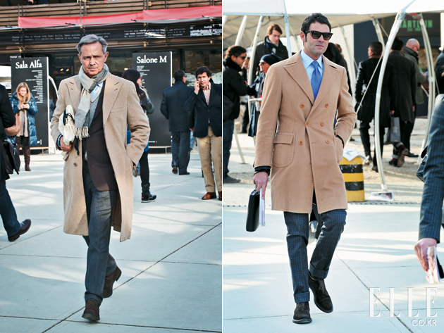 코트에도 유행이 있다. 이번 시즌엔 캐멀 코트가 대세다. 주의할 건 컬러 매칭이다. 캐멀 컬러의 고급스러움을 잘 살리려면 머플러를 두른 신사처럼 코트 안에 브라운이나 그레이 컬러 아이템을 매치해야 한다. 블랙과의 조합은 너무 두드러져서 세련된 맛이 떨어지고, 블루와의 조합은 어색하다. 선글라스를 낀 남자의 옷차림과 비교해보면 그 차이를 확인할 수 있을 것이다. |