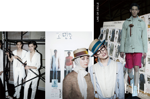 BON 2011 S/S 서울 컬렉션의 오프닝을 연 본은 ‘Playground’로 관객을 초대했다. ‘뒤집어보기’의 새로운 시선을 제안했으며, 사탕 모티브와 정글짐 패턴의 모던한 해석은 가장 눈길을 끈 부분이다. MVIO 똑같은 형태의 뱅글 인비테이션을 보낸 엠비오는 ‘Riding’이라는 컨셉트의 컬렉션을 선보였다. 두 개의 뱅글이 의미하는 것은 바로 대칭. 데칼코마니처럼 완벽한 대칭의 미학은 안경에 붙은 숫자, 톱 밑에 달린 큰 포켓, 쌍둥이 모델들의 등장으로 극대화됐다. JUNN.J 준지의 옷은 테일러드와 스포티가 매력적으로 결합된 파워풀한 컬렉션이었다. 올 화이트 컬러는 니트와 거즈, 메시 등 이질적인 소재의 조합을 도모했고, 나사를 조였다 풀었다 하는 듯한 전자음은 벨트, 밴드, 지퍼 등의 디테일과 무척 잘 어우러졌다. |