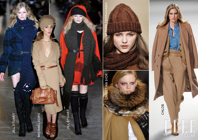 Q 겨울철에는 스타일에 활용할 수 있는 액세서리(머플러, 글러브, 모자 등)가 많은 것 같아요. 이번 시즌 트렌드에 걸맞은 포인트로 활용하고 싶은데, 어떤 아이템을 어떻게 매치하는 것이 좋을까요. A 겨울에 자주 할 수 있는 액세서리는 니트 소재 머플러와 모자, 스누드가 있겠네요. 겨울 액세서리 매칭의 예를 가장 잘 보여준 질 스튜어트 컬렉션을 추천하고 싶어요. 오버사이즈 아우터에 벌키하게 짜인 니트 머플러를 무심하게 두른 것이 걸리시하면서도 세련돼 보였거든요. 머플러만큼 유용한 아이템은 니트 모자인데요, 여성스러운 맥시 스커트에 미니멀한 디자인의 재킷을 입고 니트 모자를 매치한 마이클 코어스 컬렉션처럼 여성스럽게 차려입은 듯한 룩에도 제법 잘 어울려요. 니트 모자라고 해서 꼭 캐주얼한 룩에만 어울리는 것은 아니랍니다. 다양한 룩에 매치해보면 의외로 반전의 멋을 낼 수 있어요. 또 지난겨울부터 인기를 끌기 시작한 스누드도 강력 추천하는 아이템입니다. 개인적으로는 퍼 소재 스누드를 추천하고 싶습니다. 니트 소재는 자주 착용하다 보면 늘어나기도 하지만 퍼 스누드는 보온성은 물론 좀 더 멋스러운 분위기를 연출해주거든요. By 패션 에디터 김영글