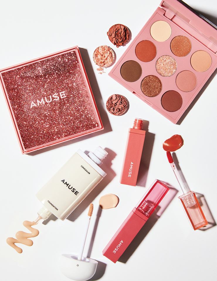 어뮤즈의 감성이 담긴 빈티지 로즈와 살구빛 테라코타 컬러의 누드 메이크업.