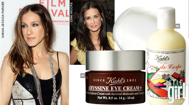 kiehl’s 불혹의 나이를 넘긴 나이에도 변치않는 외모를 자랑하는 헐리우드 스타, 데미무어와 사라 제시카 파커. 그녀들의 안티 에이징 노하우의 비밀은 고가의 화장품도 럭셔리한 스파 살롱도 아닌 키엘의 ‘애비신 아이크림+’ 과 ‘크렘 드 꼬르’에 있었다. “키엘의 보디 로션 없이는 하루도 살 수 없을 정도예요. 건조함이 심한 제 피부를 하루 종일 촉촉하게 가꿔주기 때문이죠.” 가브릴 M. KCR은 데미 무어 역시 사라 못지 않은 키엘 마니아라고 말한다. “저희 매장에서 애비신 라인을 배스킷에 넣는 그녀를 보는 건 별로 어려운 일이 아니예요. 애비신 아이크림+덕분에 그녀는 48세의 나이가 믿겨지지 않는 건강한 눈가를 지키고 있죠.”