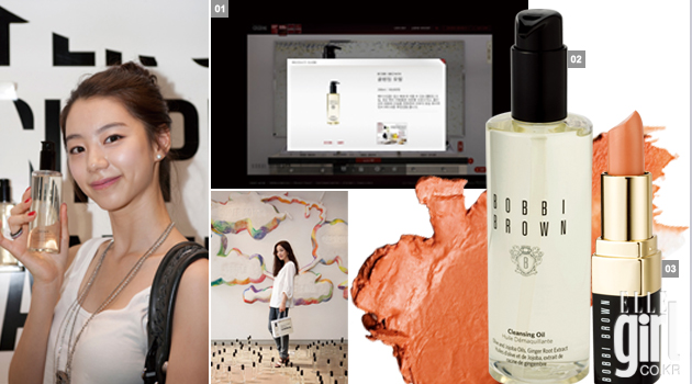 1 ‘엣진’에 있는 바비 브라운 매장에서 제품에 대한 자세한 정보를 쉽게 찾아볼 수 있다. 2 천연 수분 보호막을 강화시켜 유수분 밸런스를 맞춰주는 클렌징 오일. 200ml. 5만5천원. 3 비타민 성분이 입술에 영양을 공급하고 보호하는 역할을 하는 립 칼라. 3.4g. 3만4천원.