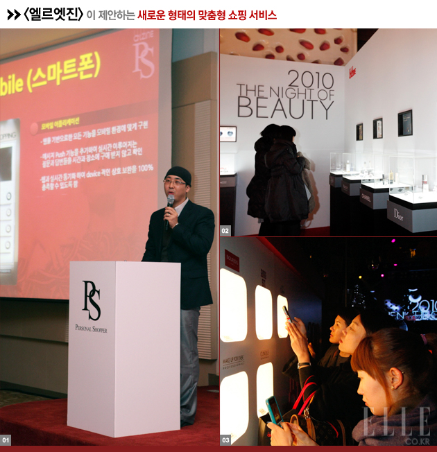 새롭고 놀라운 서비스의 중심에 서있는 엘르엣진. 2011년 1월, SNS를 기반으로 한 맞춤형 쇼핑 시스템을 오픈할 예정이다. 오픈을 앞두고 뷰티에 관한 폭넓은 지식을 자랑하는 뷰티 트렌드 리더, 퍼스널쇼퍼(PS)와 뷰티 브랜드 VIP를 위해 열린 화려한 파티 현장을 소개한다.