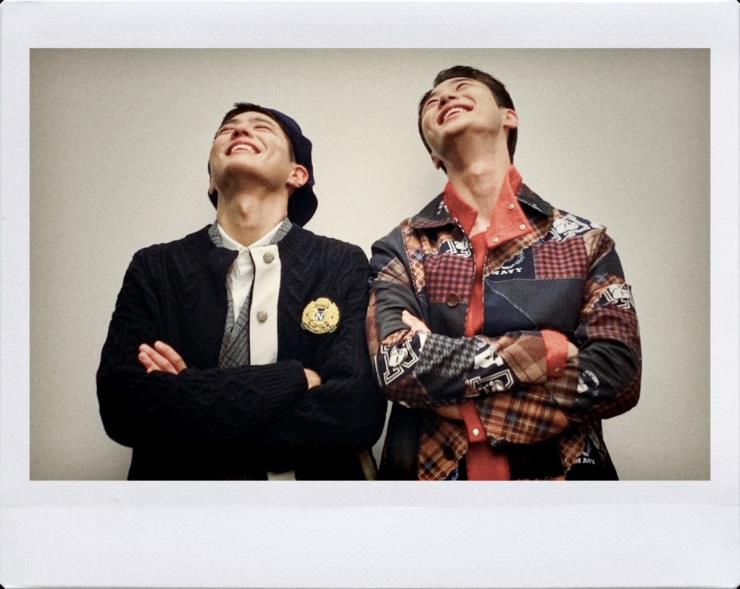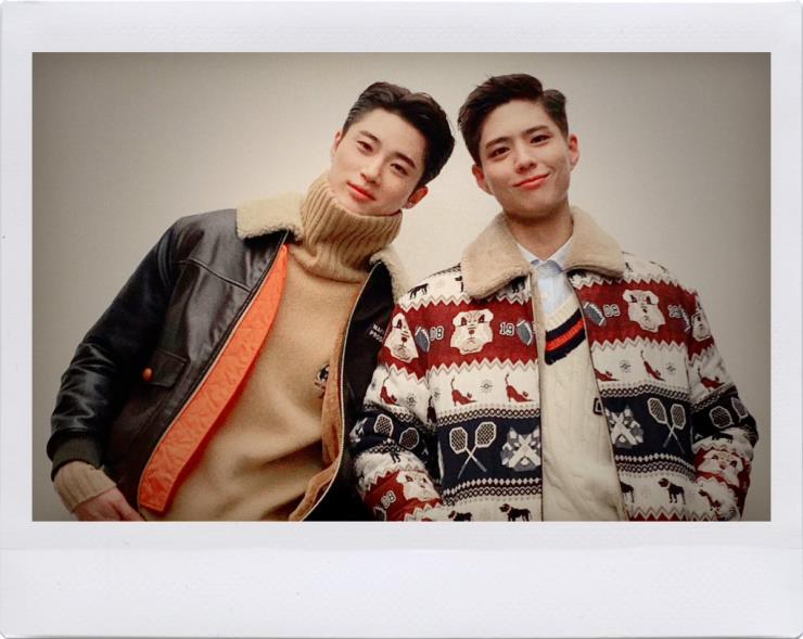 가을 분위기 한가득! 포근하고 아늑한 두 남자의 스타일링을 만나보세요. 도톰한 베이지 터틀넥에 '뽀글뽀글' 플리스 칼라로 포인트를 준 레더 재킷을 매치한 변우석. 그리고 핀 스트라이프 블루 셔츠에 프레피 스타일의 V 넥 니트와 블루종을 매치한 박보검. 베이지와 아이보리 톤으로 컬러 팔레트를 맞춰 훈훈한 브로맨스 룩을 완성했어요. 한편 박보검은 화이트부터 그레이, 블랙으로 이어지는 모노톤의 세련된 레이어링 룩을 선보였는데요. 이때 변우석은 패치워크로 포인트를 준 아우터를 선택해 눈길을 사로잡았답니다. 전혀 다른 분위기지만 두 사람의 쌍둥이 같은 포즈 덕분에 절친 케미는 제대로 살았죠?