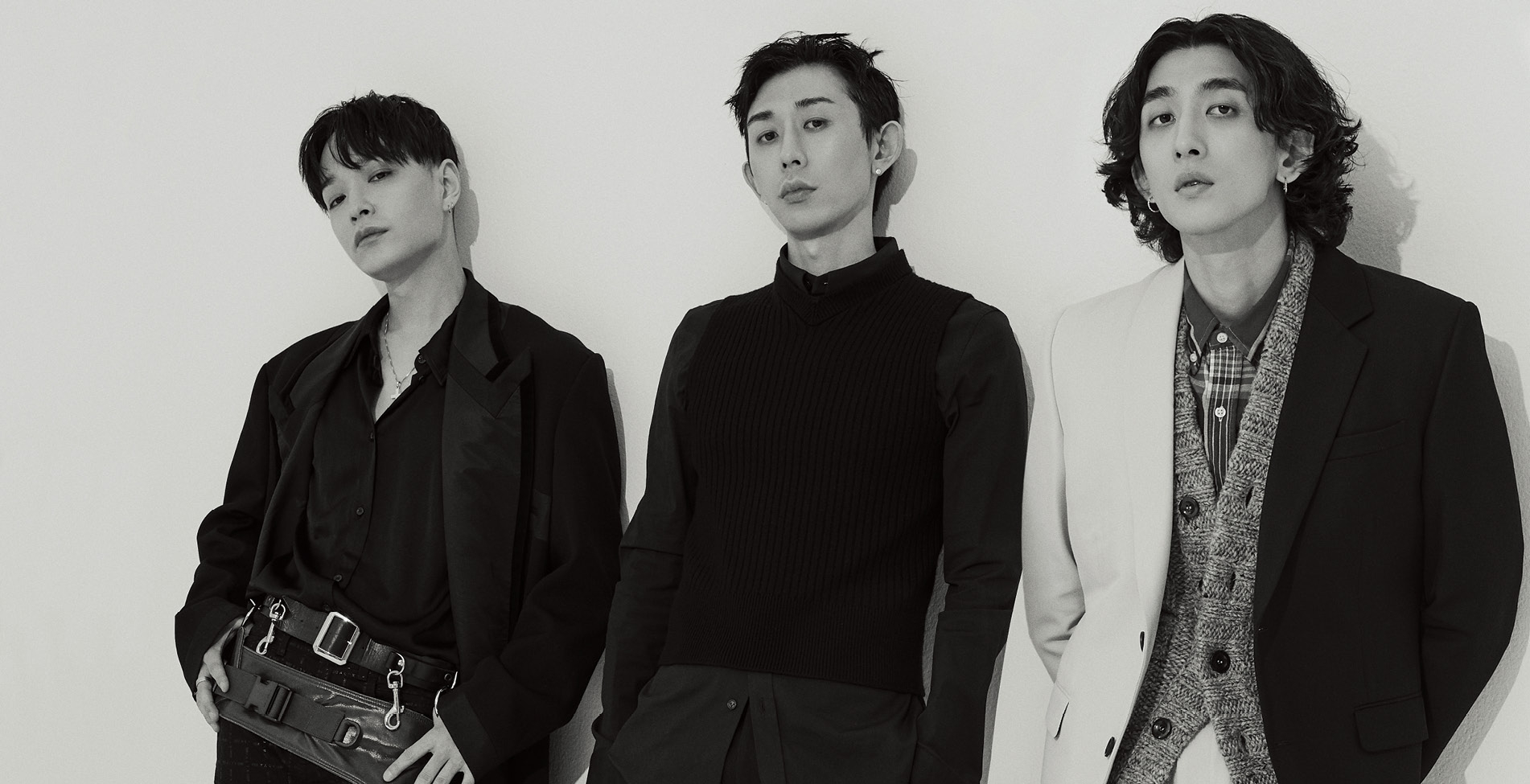사이먼 도미닉이 입은 블랙 재킷과 슈즈는 Fendi. 셔츠와 팬츠, 벨트 백과 주얼리는 모두 스타일리스트 소장품. 코드 쿤스트가 입은 셔츠와 니트 베스트, 팬츠는 모두 Bottega Veneta. 슈즈는 Valentino Garavani. 최정훈이 입은 투 컬러 수트는 Fendi. 체크 셔츠는 Polo Ralph Lauren. 니트 카디건은 Prada. 슈즈는 Bottega Veneta.