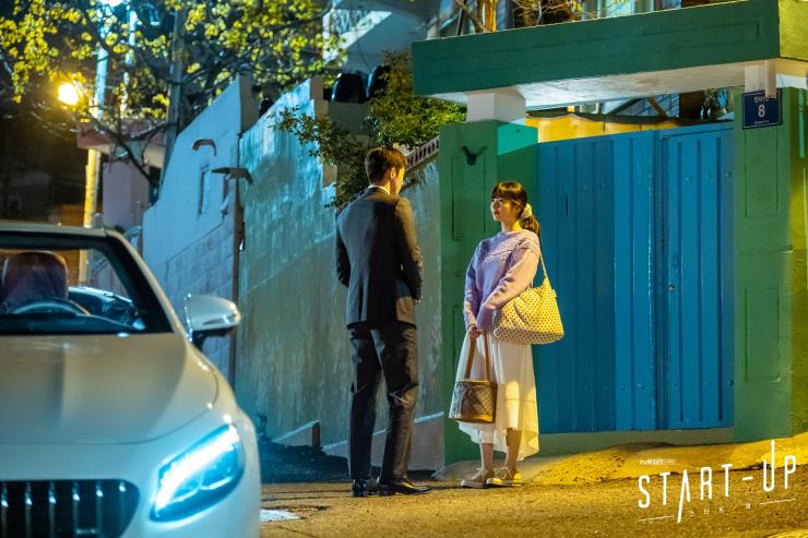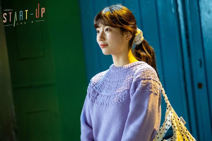 」 '남도산(남주혁)'과의 첫 데이트가 있던 장면. 수지가 선택한 데이트 룩은 바로 화사하고 사랑스러운 라일락 컬러의 니트로