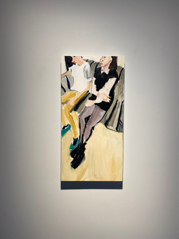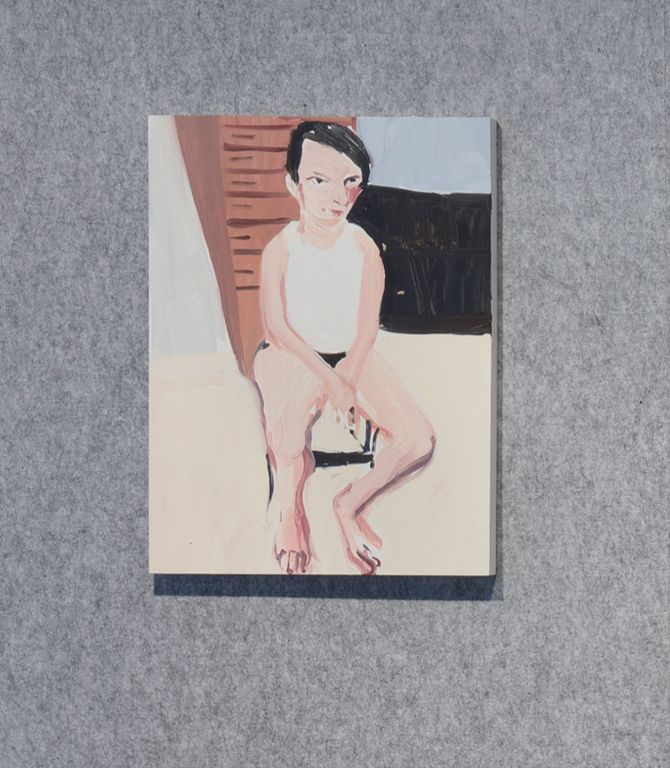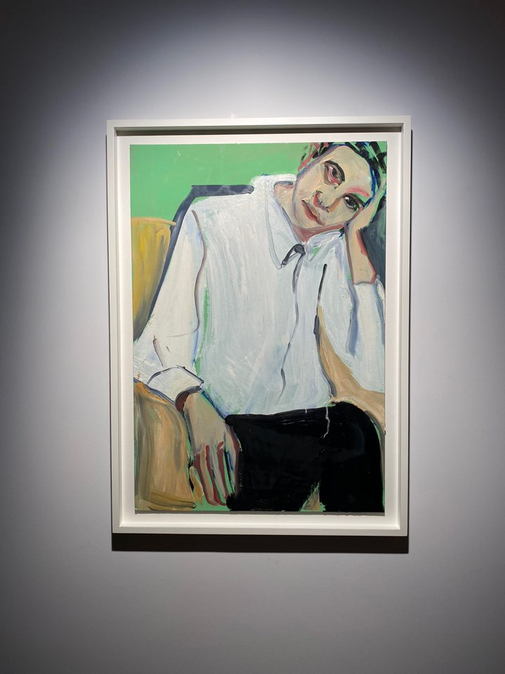 흰 셔츠에 검은색 바지를 입은 남자가 한쪽 손에 머리를 괴고 삐딱하게 앉아있다. 지금 이 상황이 무척 무료한 눈치다. 매혹적인 냉소가 배인 표정이 어쩐지 티모시 샬라메를 떠올리게 한다. 프레이저는 이번 전시에 포함된 유일한 남성 모델이다. 그는 에스메가 태어나기 불과 일주일 전에 태어난 친구의 아들이다. 지난 20여 년간 주로 여성을 그려온 이유에 대해 작가는 여성의 신체와 제스처, 풍부한 표정이 딱딱하고 무감한 남성보다 회화적 대상으로 더 알맞다고 생각해서였을 뿐이라고 밝혔다. 작가는 아직 성인이 되지 않은 프레이저의 섬세한 표정을 화폭에 담았다. 또, 질풍노도의 시기를 거치며 평생 알고 지낸 에스메와 프레이저의 관계에 문득 끼어든 어색함을 작은 캔버스에 묘사한 그림도 있다.