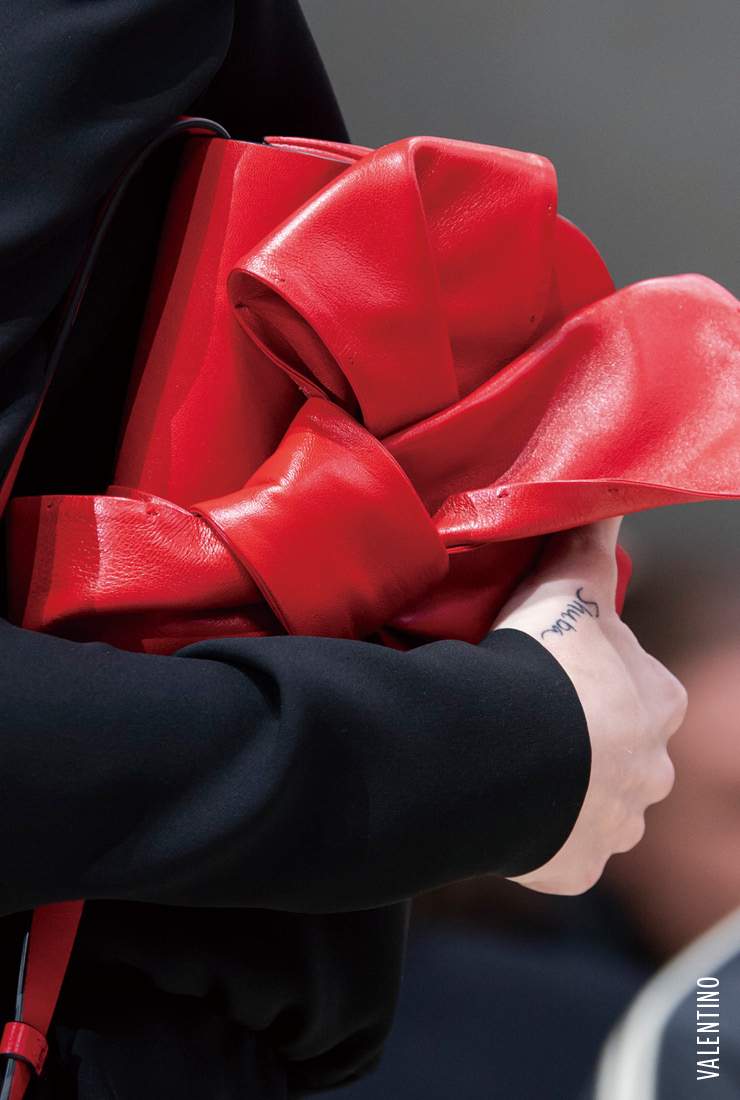 낭만적인 리본 모티프가 각양각색의 액세서리에 접목됐다. 마크 제이콥스는 모델의 머리에 거대한 리본 헤드기어를 씌웠고, 지암바티스타 발리와 구찌 등의 컬렉션에선 작고 앙증맞은 리본 장식이 곳곳에 사용됐다. 다양한 사이즈의 가방 위에 장인 정신으로 리본 모티프를 풀어낸 발렌티노의 컬렉션도 놀랍다. 분명한 건 내 안의 소녀를 깨울 시간이 다가왔다는 것이다. 나이 따위는 상관없다.   Big Bow