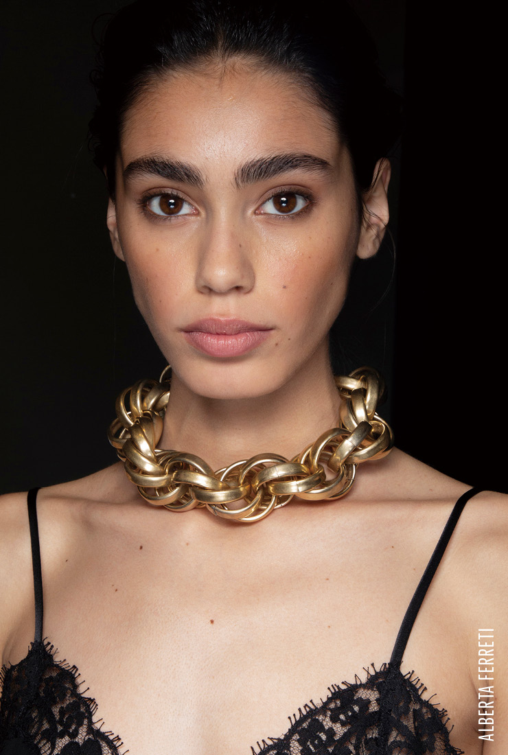 메탈 액세서리에 매료된 디자이너들은 한층 더 강렬한 시각적 자극을 고심한 듯하다. 그 결과 거대하게 몸집을 키운 청키 체인이 도출됐다. 가장 두각을 나타내는 분야는 주얼리로 두툼한 울 니트에도, 섬세한 란제리 룩에도 근사하게 어울린다. 클래식 핸드백에 커다란 체인을 결합한 JW 앤더슨과 슈즈 스트랩으로 청키 체인을 활용한 N°21의 묵직한 한 방도 눈여겨보시길.    Cunky Cain