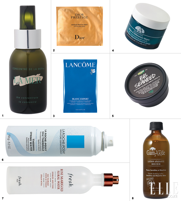 1 발효 해초 성분이 혈관 확장으로 인한 붉은기를 개선하고 흉터를 완화해준다. 48만5천원, 50ml. 라메르 2 플라워 추출물이 피부톤을 환하게 개선해주는 프레스티지 리바이탈라이징 마스크, 6매, 14만5천원. 크리스챤 디올 3 뛰어난 밀착력, 수분 공급 및 피부 개선에 좋은 블랑 엑스퍼트 화이트닝 셀룰로스 마스크. 6매, 10만5천원. 랑콤 4 젤 타입 포뮬러가 피부에 빠르게 흡수되는 나이트 크림. 50ml, 6만5천원. 오리진스 5 미네랄이 풍부한 해초 마스크 팩, 모공 수축 및 트러블 진정 효과가 있는 비비씨위드, 50g. 1만6천원대. 러쉬 6 민감한 피부 진정 및 재생 효과에 뛰어난 온천수 미스트, 오 떼르말 150ml, 1만6천원. 라로슈포제 7 로즈와 메리골드 플라워 워터의 피부 진정 및 수분 공급 효과를 지닌 플로럴 워터, 250ml, 6만5천원. 프레쉬 8 라벤더 워터가 염증을 가라앉히고 피부 회복을 도와주는 젠틀 수딩 로션, 40ml, 3만5천원. 갸마르드 |