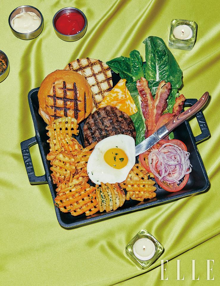알록달록한 색깔도 예쁘지만 포만감까지 훌륭한 플래터. 취향과 배 속 상태에 따라 버거 속을 채울 수 있는 DIY 형태로 만들었다. 파티 메이트가 샤부샤부나 월남쌈같이 손으로 만들어 먹는 행위를 그리 즐기지 않는다면 아예 완성된 버거로 만든 다음, 잘라 나눠 먹길. 패티는 다진 마늘과 배, 대파, 양파에 간 쇠고기와 간 삼겹살, 간장, 설탕, 참기름을 적절히 배합해 넣고 손으로 치대면서 만든다. 버거 속으로 준비한 토마토와 적양파는 슬라이스해 준비한다. 가까운 패스트푸드 전문점에서 사온 따끈따끈한 감자튀김을 곁들이면 보다 풍족한 버거 플래터가 탄생한다. 묵직한 맛의 패티와 바삭한 감자튀김은 자연스럽게 시원한 맥주를 부를 터. 은은한 감귤 향이 도는 상큼한 제주에일이나 핸드앤몰트의 시큼한 밀맥주 케어바이스를 추천한다. 잘 꾸민 테라스나 발코니가 있는 집에서 한 손에 맥주를 들고 올해 있었던 즐거운 추억을 상기하며 즐기고 싶다. 라이즈 호텔 차르 윤치호 총괄 셰프의 수제 버거 플래터