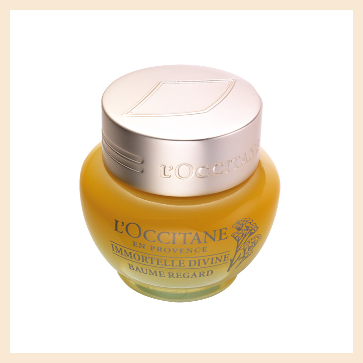 불멸의 꽃으로 유명한 이모르텔 에센셜 오일이 눈가 피부의 주름과 부기, 탄력까지 섬세하게 관리해 준다. 농밀한 밤 타입이라 소량만 덜어 손끝에서 녹이듯 문지른 뒤 펴 바르면 감촉부터 향까지 더할 나위 없이 좋다. 이모르뗄 디바인 아이 밤, 10만원, L’Occitane.