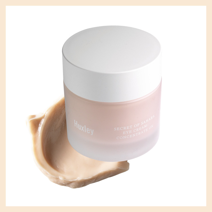 피부에서 스르르 녹듯이 발리는 젤 & 크림 제형으로 번들거리지 않고 피부 속으로 싹 스며드는 수분감이 탁월하다. 브랜드 특유의 청량감 가득한 향도 일품. 아이크림 컨센트레이트 온, 4만5천원, Huxley.