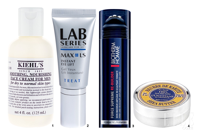 1 키엘의 에프터 쉐이브 겸 모이스처라이저. 번들거림 없이 산뜻함을 오랫동안 유지시켜준다. 아이크림은 하루 정도 잊는다 해도 모이스춰라이저는 꼭 발라줘야 한다는 사실 잊지 말아야 한다. 수딩 너리싱 훼이스 크림 포 맨 2만5천원, 키엘. 2 눈가를 팽팽하게 당겨주는 리프팅 효능의 아이크림. 세안 후 손가락에 소량을 덜어 눈가를 두드리듯 발라준다. MAX LS 인스턴트 아이 리프트 6만8천원, 랩시리즈. 3 손에 덜어 바르기 귀찮아하는 남자들에게 추천하는 롤러 볼 형식의 링클 케어 제품. 매일 30초씩 이마, 입가, 목 등 주름이 걱정되는 곳에 둥글게 굴려 주기만하면 된다. 포스 수프림 리-빌더 6만8천원, 비오템. 4 주머니에 쏙 넣고 다닐 수 있는 만능 아이템 시어버터. 입술이 건조할 때, 머릿결이 푸석거릴 때, 손이 텄을 때 어디든 사용해도 좋다. 미니 퓨어 시어버터 1만2천원, 록시땅 |