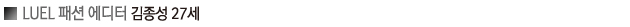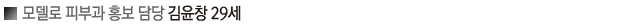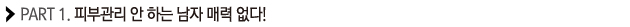 | “아무리 귀찮아도 모이스처라이저와 아이크림은 꼭 발라요. 손 큰 남자들이 여자들처럼 네 번째 손가락으로 톡톡 두드리며 꼼꼼히 바르진 못해도 절대 잊지 않고 발라줘요. 시간이 지날수록 또렷해지는 눈가의 잔주름은 용서할 수 없더라구요.“ |