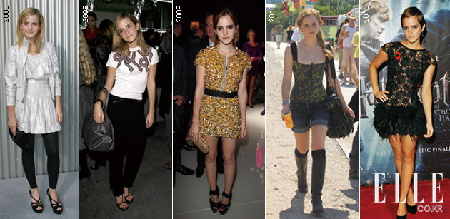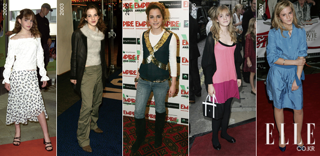 예쁘게 자라줘서 고마워~ 엠마 왓슨(Emma Watson) 할리우드 아역 배우 중 예쁘게 자라줘 고마운 이를 한 명만 꼽자면 엠마 왓슨이 아닐까. 2000년대 초반 <해리 포터와 마법사의 돌>의 헤르미온느로 데뷔할 때만 해도 그녀의 스타일은 어린아이가 어른의 옷을 입은 듯 어색한 모습이었지만, 커가면서 한 단계 진일보한 패션을 보여주고 있다. 2005년도 소니 에릭슨 엠파이어 필름 어워드에서 골드 스팽글 디테일이 가미된 톱과 데님 팬츠 룩으로 사람들의 이목을 끈 엠마 왓슨은 2008년도 즈음 본격적으로 패션 위크 프런트 로에 이름을 올렸다. 특히 작은 키를 커버해줄 수 있는 미니드레스를 즐겨 입는데, 메탈릭 골드로 전체가 장식된 드레스를 입고 2009 S/S 시즌 버버리 프로섬 쇼장을 찾은 엠마 왓슨의 스타일은 차기 패션 아이콘으로도 손색없었다. 최근 쇼트커트로 헤어스타일을 바꾼 뒤엔 더욱 과감해진 스타일을 선보이고 있으며, 얼마 전 열린 해리포터의 프리미엄 시사회에서는 블랙 레이스 미니드레스에 아찔한 하이힐을 매치해 섹시해 보이기까지 했다. |