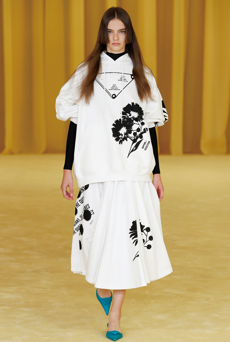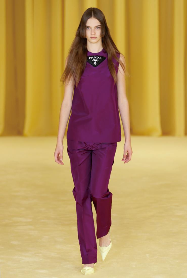 미니멀한 디자인의 화이트 톱과 쇼츠는 가격 미정, 모두 Prada.