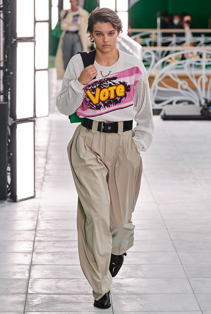 지난해부터 <팝> 매거진을 비롯해 해외 유수 매거진의 표지를 장식하며 패션계에 눈도장을 찍은 에밀리 밀러. 이번 시즌에는 루이 비통 오프닝 모델로 발탁되면서 런웨이 데뷔를 성공적으로 치렀다. 보이시한 쇼트커트와 신비로운 푸른 눈의 소유자인 그녀는 남자인지 여자인지 헷갈릴 만큼 중성적 매력을 자랑하는 인물. 한 가지 재밌는 사실은 그녀가 2만4000명의 팔로어를 거느린 헤비 틱톡커라는 점. 그녀의 틱톡 계정을 살펴보면 대부분 일상적인 영상이나 운동하는 모습을 게시하곤 하는데, 각진 어깨와 탄탄한 복근을 자랑하며 남성 팬보다 여성 팬이 더 환호하는 진풍경이 연출되기도. 여자의 마음까지 설레게 만드는 그녀의 매력에 패션계도 푹 빠져들 예감이다. 에밀리 밀러