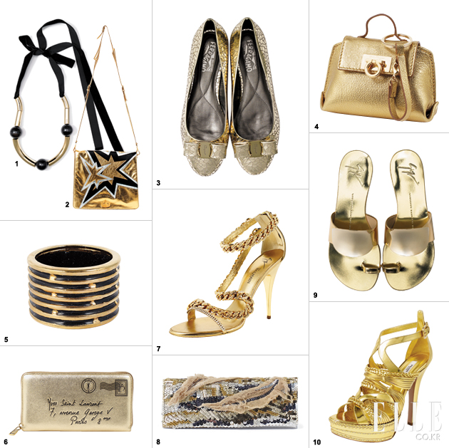 1 메탈 코튼 소재. 리본 디테일. 61만원, MARNI. 2 송아지 가죽 소재. 패치워크 디테일. 28X25X4cm. 가격미정, MIUMIU. 3 소가죽 소재. 리본 디테일. 굽 1cm. 59만5천원, SALVATORE FERRAGAMO. 4 코튼 레이온 소재. 플랩 디테일. 12X8X4cm. 31만8천원, SALVATORE FERRAGAMO. 5 메탈소재, 빈티지 텍스처. 43만원, MARNI. 6 염소가죽, 스탬프 프린트. 19X10X2cm. 70만5천원, YSL. 7 메탈 송아지 가죽 소재, 체인 디테일. 굽 11cm. 3백39만원, BALMAIN. 8 코튼 폴리에스테르 소재. 스팽글 디테일, 25X8X5cm. 1백38만원, BLUMARINE. 9 메탈 소가죽 소재, 굽 1.5cm. 93만원, GIUSEPPE ZANOTTO BY ELIDEN. 10 염소 가죽, 스트랩 디테일, 굽 13cm. 1백29만원, PRADA. |
