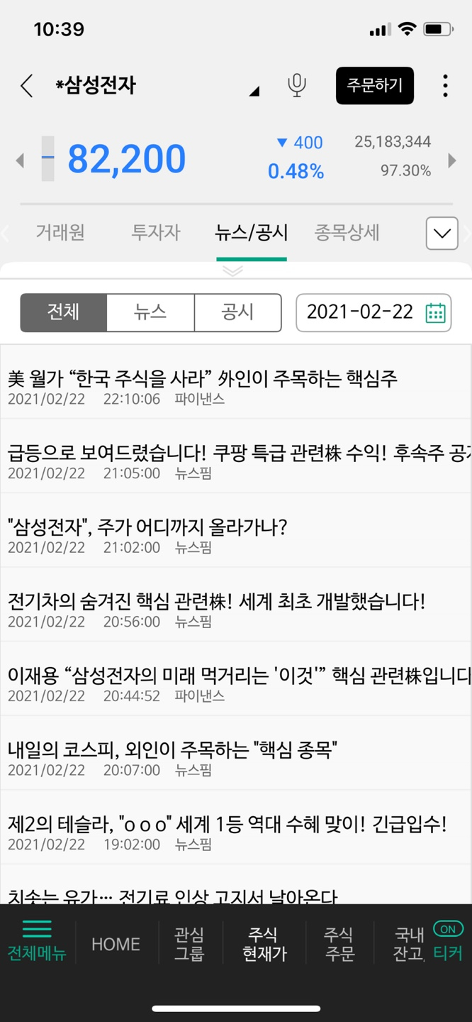4. 관심 종목 등록한 후, 기업 정보 보기
