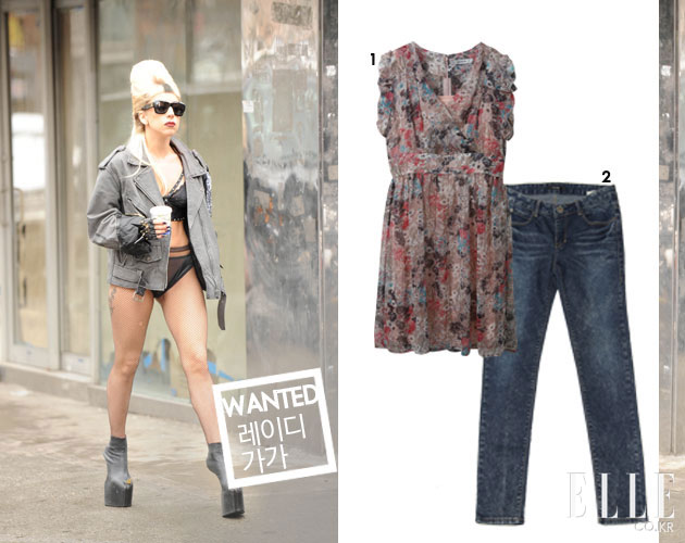 1 스노우 워싱이 돋보이는 스키니 데님 팬츠. 가격 미정, 애드 호크. 2 하늘거리는 시폰 소재로 로맨틱한 매력이 물씬 풍기는 원피스. 가격 미정, 데카당스.