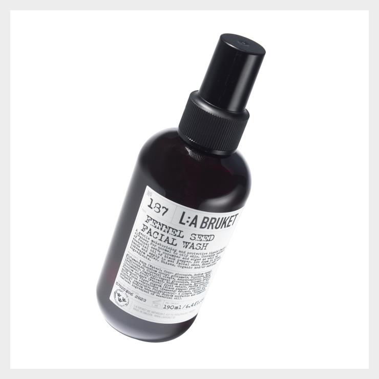 유수분 밸런스를 맞춰주는 펜넬씨 오일과 미세 순환을 촉진하는 블랙페퍼 에센셜 오일 등이 먼지와 노폐물을 효과적으로 제거하고, 피부의 부드러움과 유연함을 개선해 주는 순한 클렌저. 펜넬 씨드 페이셜 워시, 4만9천원대, L:a Bruket.