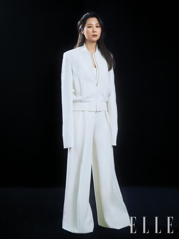 화이트 재킷과 팬츠는 모두 Max Mara. 슈즈는 Gianvito Rossi