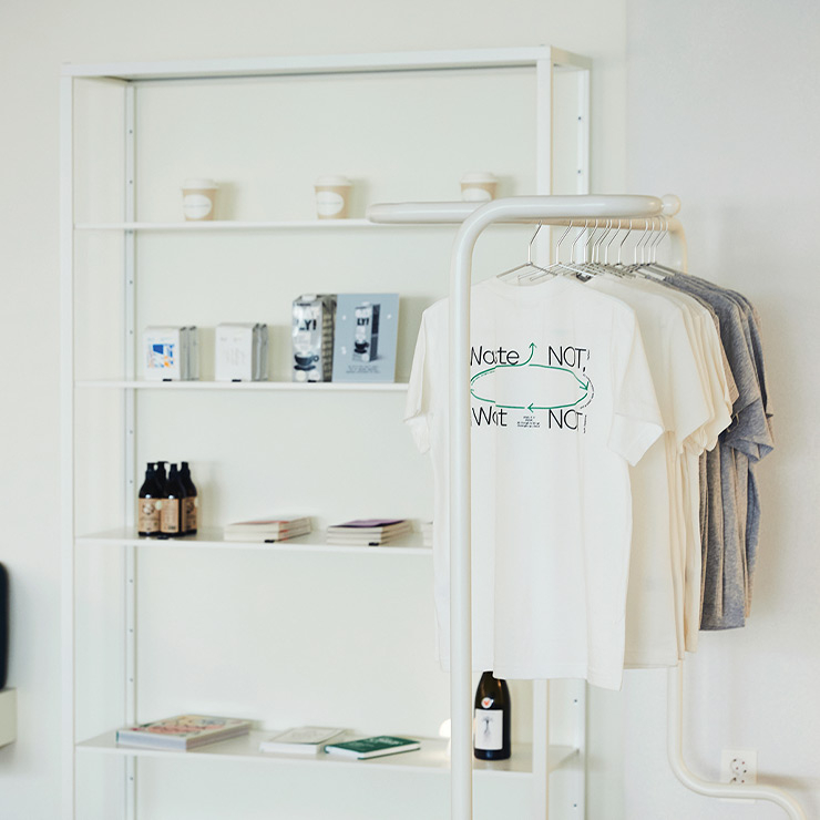 공간의 의도 카페는 일상적 공간이다 보니 지속 가능성 키워드를 다양한 방식으로 전할 수 있다. 우리 매장에서 사용하는 생분해성 테이크아웃 컵과 빨대를 보고 신기해하며 관심을 갖는 손님이 있는 것처럼 말이다. 친환경적 방식으로 가공한 원두, 비건 디저트, 관련 서적과 빈티지 의류 등 다양한 브랜드와 교류하며 접점을 만들고자 한다. 곧 내추럴 와인도 우리만의 방식으로 다루고 싶다.