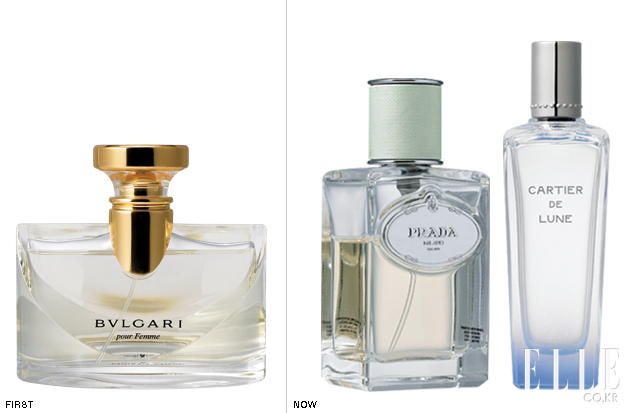 FIRST 나의 첫 향수는 지방시의 ‘쁘띠 상봉’. 또래 아이들보다 사춘기를 일찍 맞은 딸을 위해 아버지가 출장길에 사다주신 선물인데 베이비 블루 컬러 보틀에 과일과 꽃이 섞인 보드라운 향은 초등학생의 입맛에 딱 맞았다. 좋아하는 오빠에게 편지를 쓰고 나서 편지지에 살짝 뿌려 봉투에 담았을 정도로 애착이 간 향수. 쁘띠 상봉 오드 뚜왈렛 오크모스 베이스에 릴리를 블렌딩한 파우더리한 향, 50ml. US $31, 지방시.