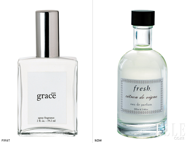FIRST 미국 여행 중 우연히 발견한 필로소피의 ‘그레이스’ 향수는 군더더기 없이 ‘grace’라고만 적힌 지극히 심플한 보틀에 가장 먼저 끌렸다. 백합, 라벤더 등이 어우러진 플로럴 향도 은근히 여성성을 드러내면서 나의 존재감을 부각시켜 마음에 들었고. 그때 그 시간 속의 나를 고스란히 담고 있는 향이라고 해야 할까? 퓨어 그레이스 오 드 퍼퓸 워터 릴리, 라벤더 등을 조합한 순수하고 맑은 향취, 60ml. 6만원대, 필로소피.