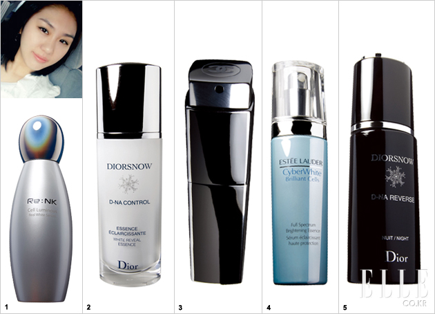 4 에스티 로더 사이버화이트 브릴리언트 셀 풀 스펙트럼 브라이트닝 에센스. 14만원대. 오럴 빛이 살짝 도는 광택의 사이버틱한 텍스처가 피부에 닿자마자 피부에 빛이 나는 것 같다. 이 제품의 가장 큰 특징은 동양인 피부에서 흔히 나타나는 네 가지 주요 잡티를 집중 공략해 잡아준다는 ‘잡티 종결자’로서의 역할을 한다는 것! 다소 유분기가 느껴지는 텍스처 때문에 지성 피부보다 건성 피부에 권하고 싶은 에센스.