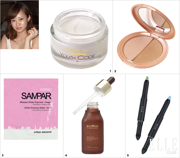 1 로레알 파리 유스코드 리주비네이팅 크림. 5만원. 안색이 급격히 칙칙해졌거나 주름이 도드라져 보일 때 사용해 볼 것. 토너 사용 후 얼굴 전체에 골고루 펴 바르면 생크림처럼 촉촉한 텍스처가 얼굴을 보드랍게 감싸준다. 풍부한 수분이 오일 입자 속에 포함돼 있는데도 번들거리거나 끈적이지 않아 더욱 기특한 제품. 특히 주름 개선에 탁월한 고분자 성분도 듬뿍 함유돼 있으니 깊게 자리 잡은 주름이 신경 쓰이는 곳에 마사지하면서 발라주면 더욱 효과적일 듯. 이 크림을 바른 날엔 수분 크림을 건너 뛰어도 좋다.