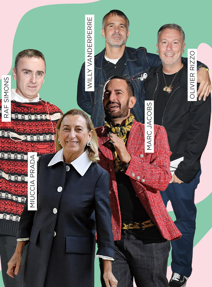 디자이너가 사랑하는 디자이너! 수많은 미우치아 프라다의 팬 중에서 특히 마크 제이콥스와 라프 시몬스의 프라다 사랑은 대단하다. 마크 제이콥스는 평소 프라다의 여성 컬렉션을 즐겨 입기로 소문난 광팬! 요즘은 발렌시아가를 비롯해 다양한 브랜드를 입지만, 루이 비통 시절에는 경쟁사나 눈에 띄는 브랜드는 모두 지양했다. 오로지 프라다만 제외하고! 지난 2월 선보인 프라다의 컬렉션 대담 영상에도 마크가 자진해 패널리스트로 등장하기도. 라프 시몬스는 자신의 브랜드보다 프라다 의상을 더 많이 입어 화제가 됐다. 질 샌더가 프라다 그룹에 속했던 시절, 질 샌더의 CD를 맡은 것 역시 미우치아 프라다와의 관계 때문이었다고. 이제는 프라다 컬렉션을 미우치아와 함께 만들고 있다니!