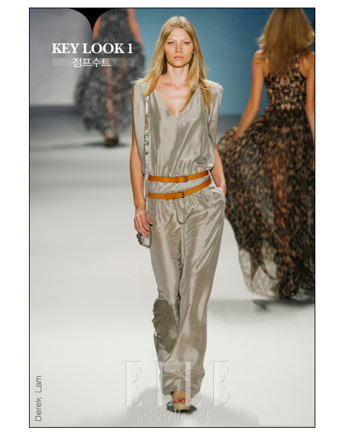 Designer 처방입니다! "캐주얼해 보이지 않는 점프수트라면 높은 웨지힐을 신어보세요. 반대로, 데랙램 컬렉션처럼 캐주얼한 스타일엔 무리하게 킬힐을 신기보다는 캔버스화를 신는 것이 좋고요. 점프수트는 허리선이 낮은 경우가 많으니 벨트를 활용하면 허리선이 높아 보여 키가 커 보이니 참고하세요." |