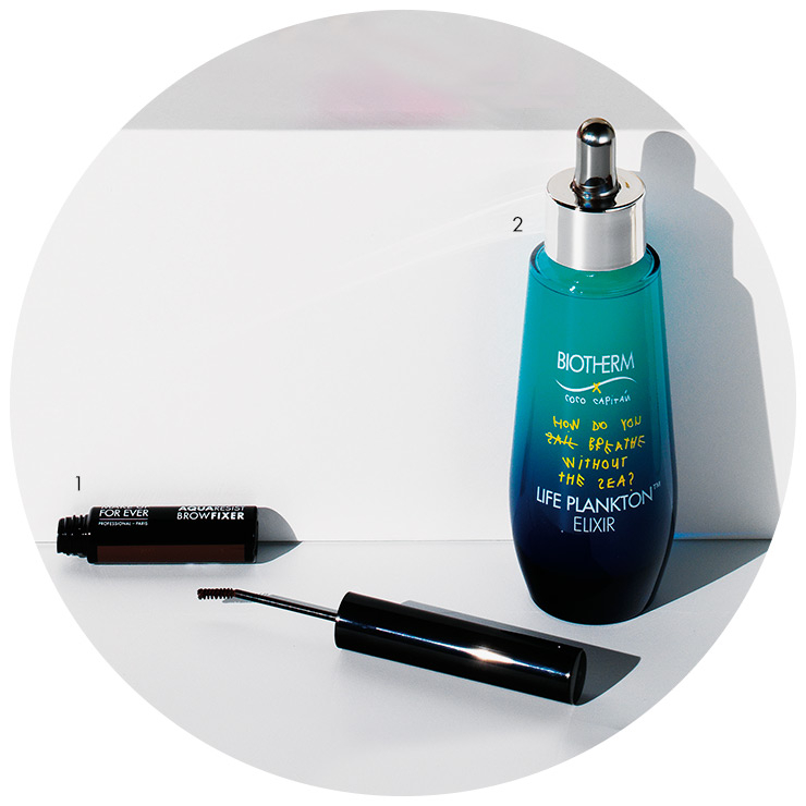 2 예술가 코코 카피탄과 협업으로 탄생한 리미티드 에디션. 바다에 대한 인식을 제고하기 위해 그녀가 만든 문구를 용기에 삽입하고, 25% 재활용 유리 용기를 사용했다. 라이프 플랑크톤™ 엘릭시어 안티-에이징 세럼, 코코 카피탄 리미티드 에디션, 13만5천원대, Biotherm.