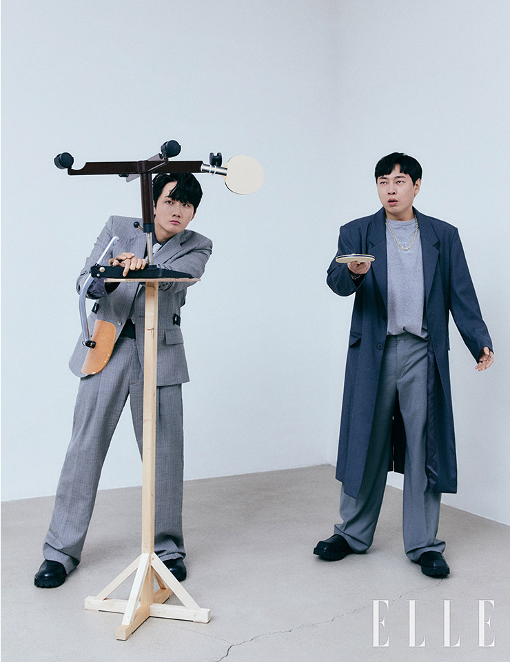 화보 촬영 후에는 인터뷰가 진행됐다. 탄탄한 인지도로 ‘개그계의 아이돌’이라고 불리는 두 사람은 ‘아이돌’이라는 호칭에 대한 소감을 묻는 질문에 “데뷔 16년, 17년 차에 듣기에는 조금 쑥스러운 수식어 같다”라고 답하면서도 팬들에 대한 감사를 전했다. 결혼 해 아이가 있는 이용진은 “나는 이제 ‘아이돌’이 아니라 ‘아이 둘’이 목표인 사람이다”라고 농담을 건네기도 했다.