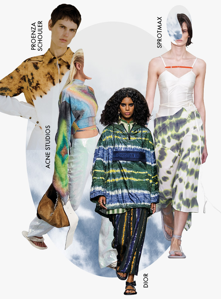 게르하르트 리히터의 ‘4900가지 색채’처럼 자유롭고 규칙적이지 않게 조합된 컬러 스펙트럼이 주목받고 있다. 그의 작품이 재미있는 점은 어떤 방식으로도 계산되지 않고 랜덤으로 완성된 컬러 차트라는 것이다. 이런 리히터의 작품처럼 우연한 컬러 효과로 완성된 타이다이 염색법이 주목받고 있다. 타이다이 기법은 천을 접거나 구기거나 동그랗게 묶어 염료가 스며들지 못하게 하면 생각지 못한 모양과 염료가 섞이며 수천 가지 컬러로 탄생된다. 기성복이라 해도 완벽하게 똑같은 모양과 컬러를 찾을 수 없다. 현란한 무지개 컬러부터 줄무늬, 도트 무늬, 알 수 없는 추상적인 패턴까지 이번 여름 자유분방한 타이다이 마법에 빠져들 때다.