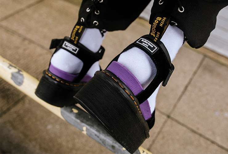 다시 돌아온 90년대 트렌드 속에 시대를 주름잡았던 브랜드들의 협업도 눈여겨볼 만하다. 스트리트 문화와 음악이라는 교집합을 가진 닥터 마틴과 엑스걸은 반항적인 무드를 녹여 블랙 캔버스 소재의 레이스업 부츠와 청키한 샌들을 선보였다.