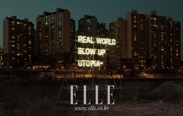 REAL WORLD BLOW UTOPIA 사진작가 백승우는 이번 개인전 <판단의 보류 Deferred Judgement>에서는 전작들을 좀 더 실험적으로 변형시킨 신작과 미발표작을 선보인다. 북한을 소재로 한 또 다른 연작에서 백승우는 북한이 '지상낙원'이라며 뿌려댄 선전물(콘크리트와 철근으로 이루어진 거대한 백색 건물 이미지)에 빨강, 파랑, 노랑의 원색을 덧입혀 영화 포스터 같은 과장된 시각적인 이미지를 만들어낸 적 있다. 북한이 강요하는 유토피아는 너무나 쉽게 조작될 수 있는 허구의 세계일 뿐임을 지적한 것. 이번 전시에서는 그 'Utopia' 이미지를 13개 조각으로 나눠 13개 국가로 보낸 뒤 재조합하는 실험적인 방식을 선택한다. 그 고민은 사진을 단순하게 촬영하고 인화해 액자 형태로 거는 기존의 방식에서 한 걸음 더 나아가 이미지를 수집하는 것부터 재구성하고 설치하는 방식에까지 닿았다. 우리가 의심 없이 믿어온 이미지들을 뒤집어보고 '진실'을 향해 의문을 던지려는 몸짓이다. 지금도 그는 우리와 그 자신에게 묻고 있다. 당신이 보는 세계가 '진짜'라고 믿습니까? 아트선재센터. (DATE 7월31일까지 TEL 733-8945)